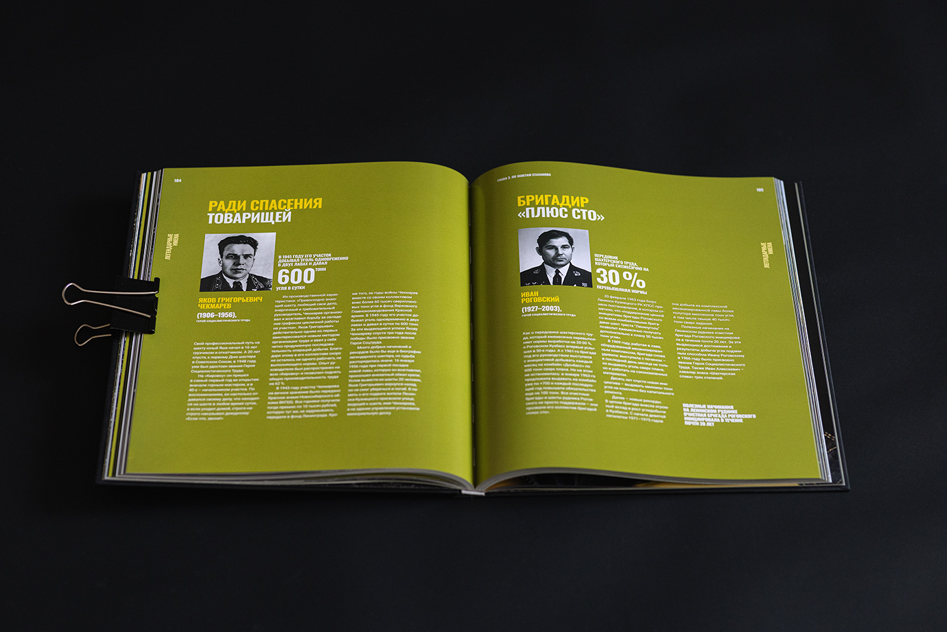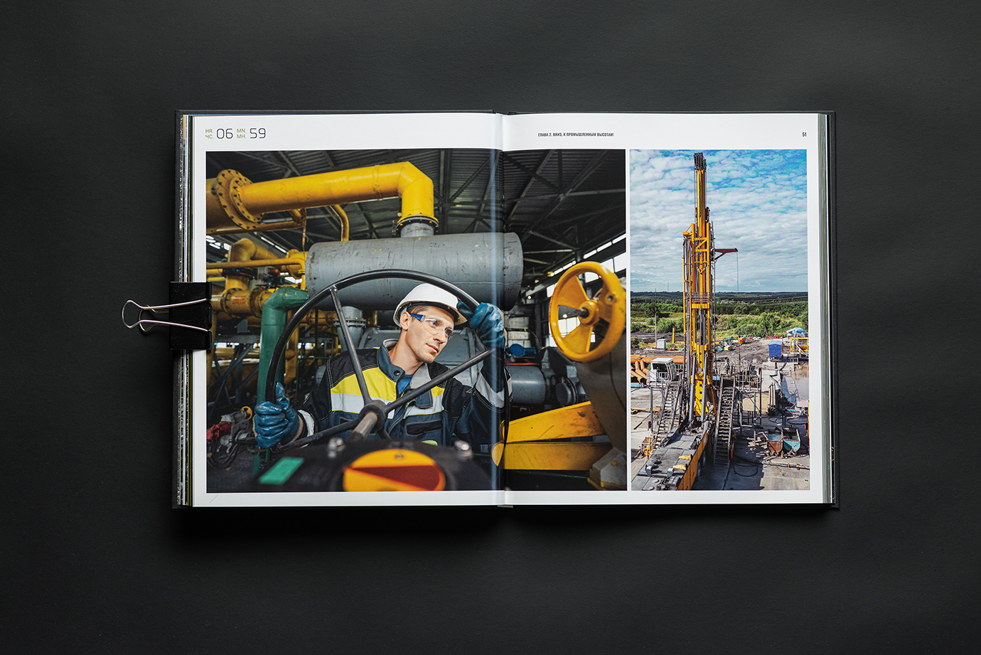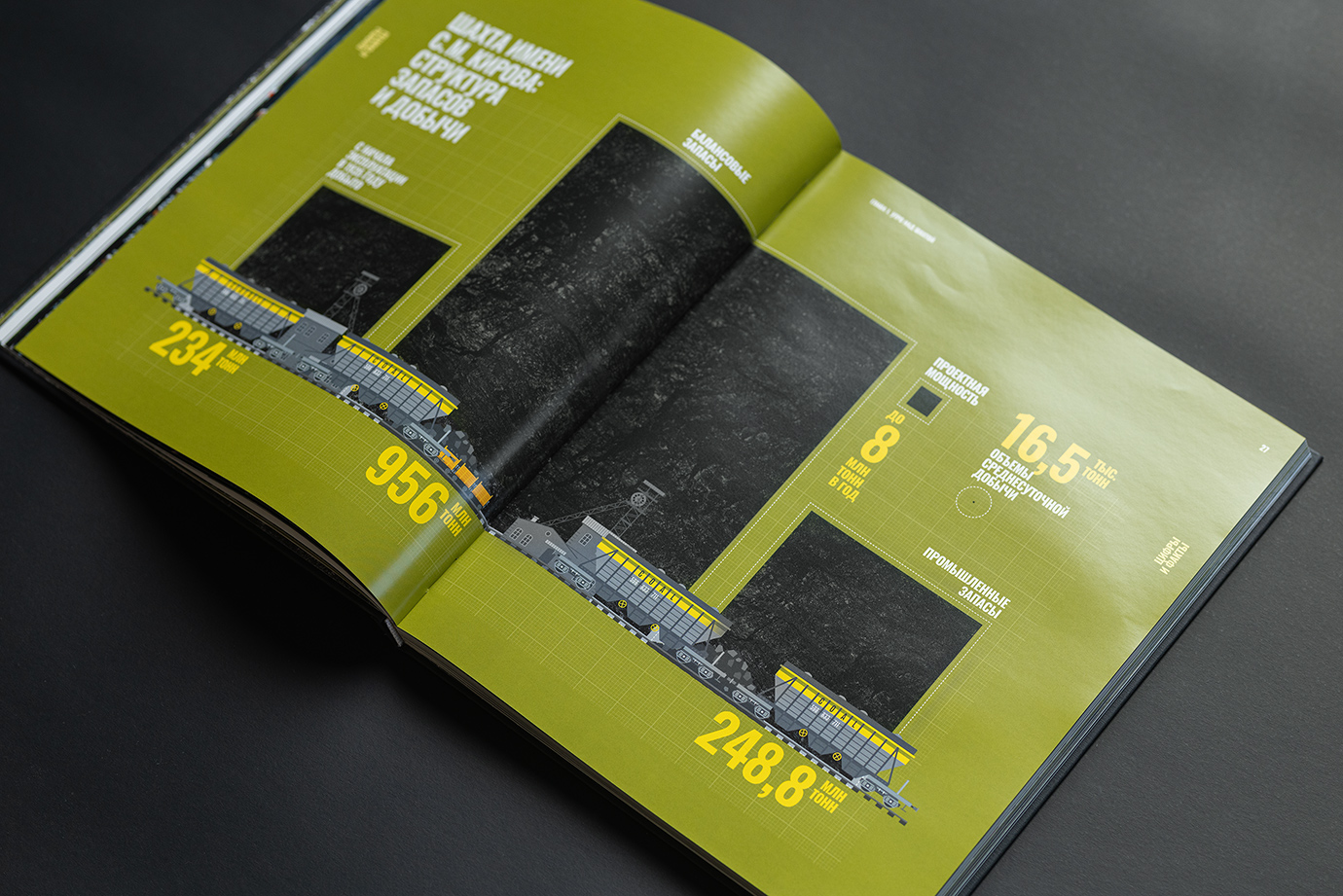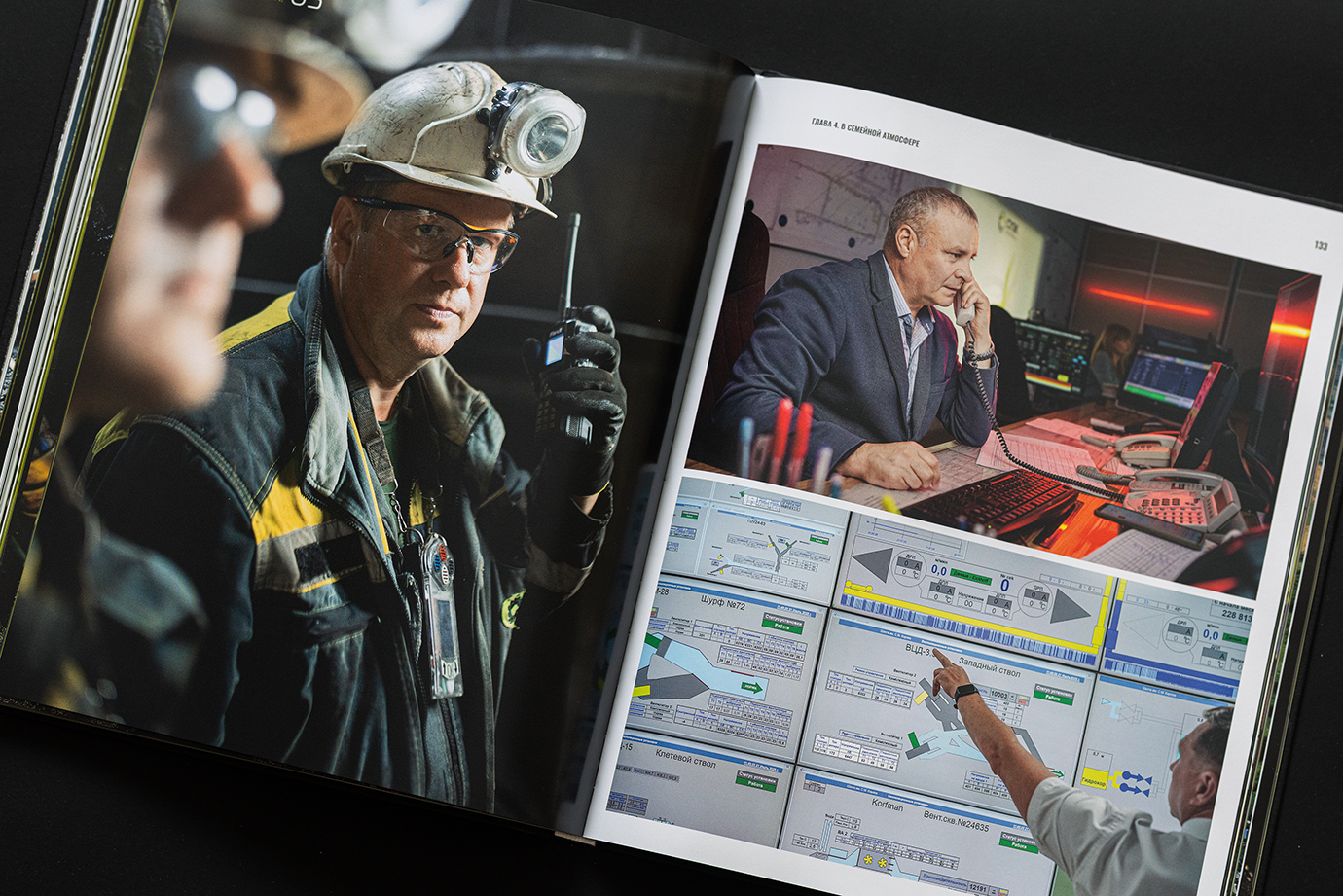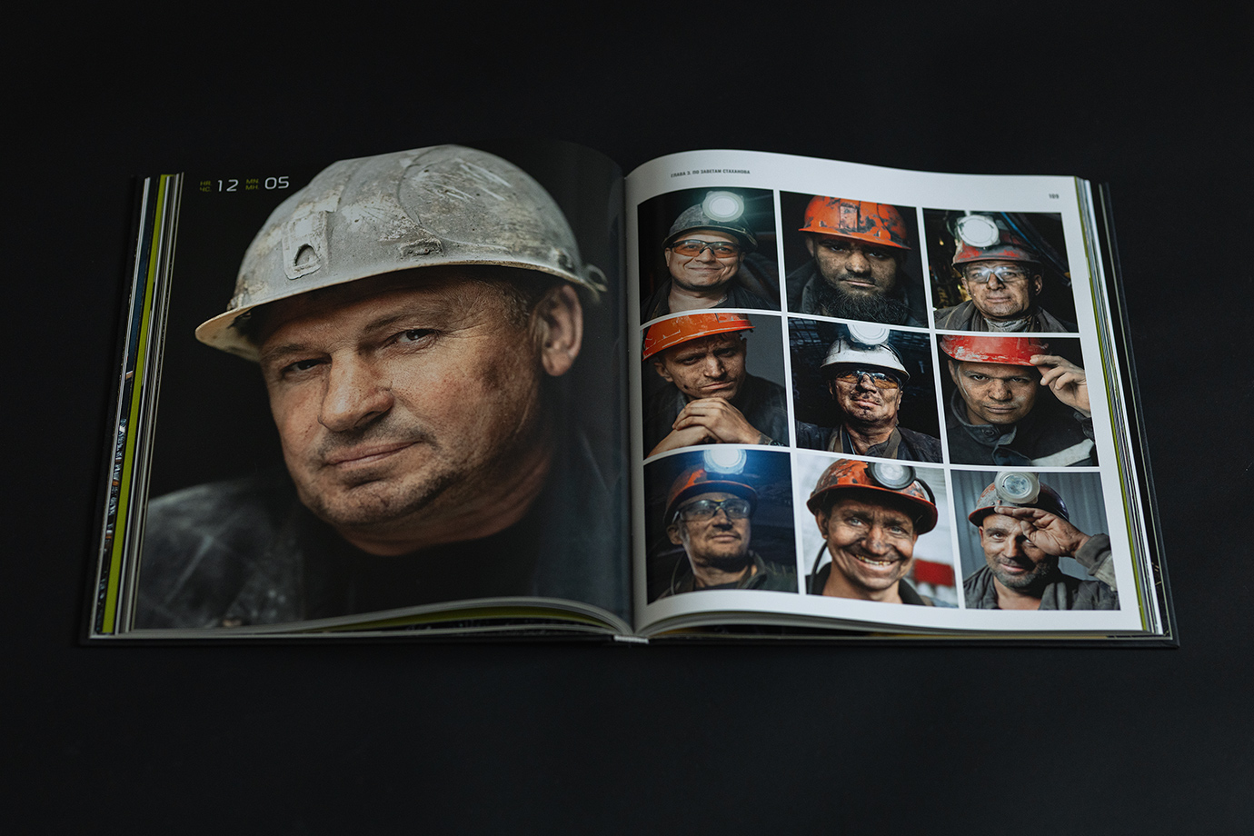 Юбилейная книга для шахты имени Кирова — это честный и подробный портрет предприятия, рассказанный через один рабочий день. В основе концепции — 24 часа из жизни шахты: поминутно выстроенный ритм смен, процессов и людей, которые обеспечивают бесперебойную работу производства.