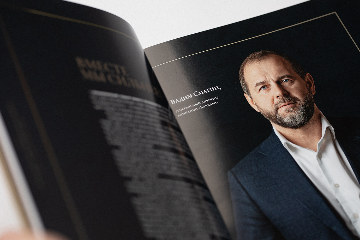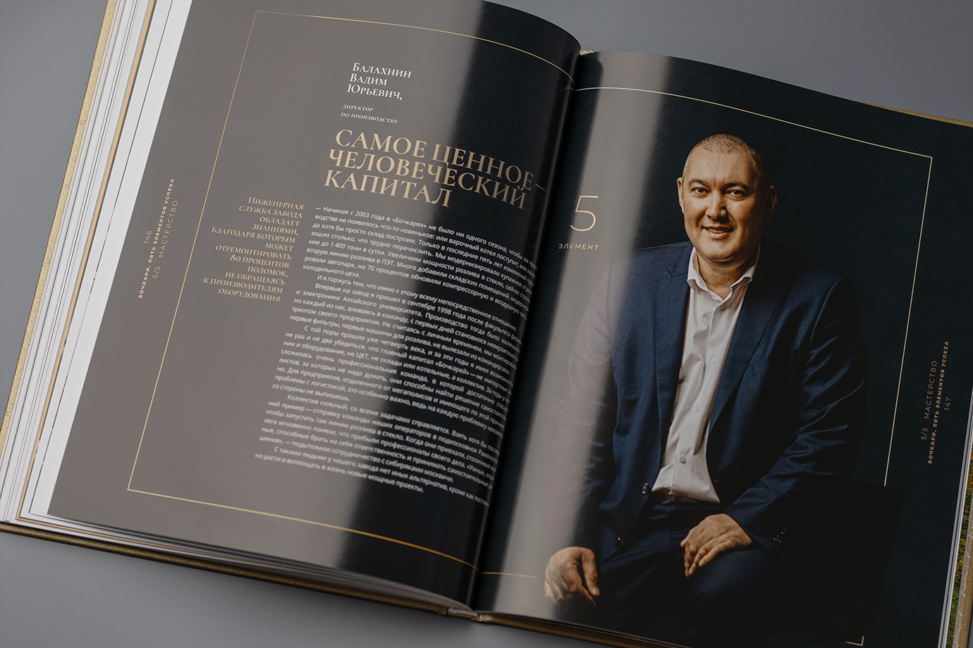 "Бочкари" - не просто предприятие. Это социом. И мы сосредоточились на самых важных элементах его деятельности. Элементарный подход позволил нам максимально эффективно использовать возможности текста, фото, инфографики. Концепция пяти элементов была сфокусирована на команде компании, которая растет сама и развивает производство, запускает новое оборудование, создает продукцию, которая пользуется большим спросом в России.