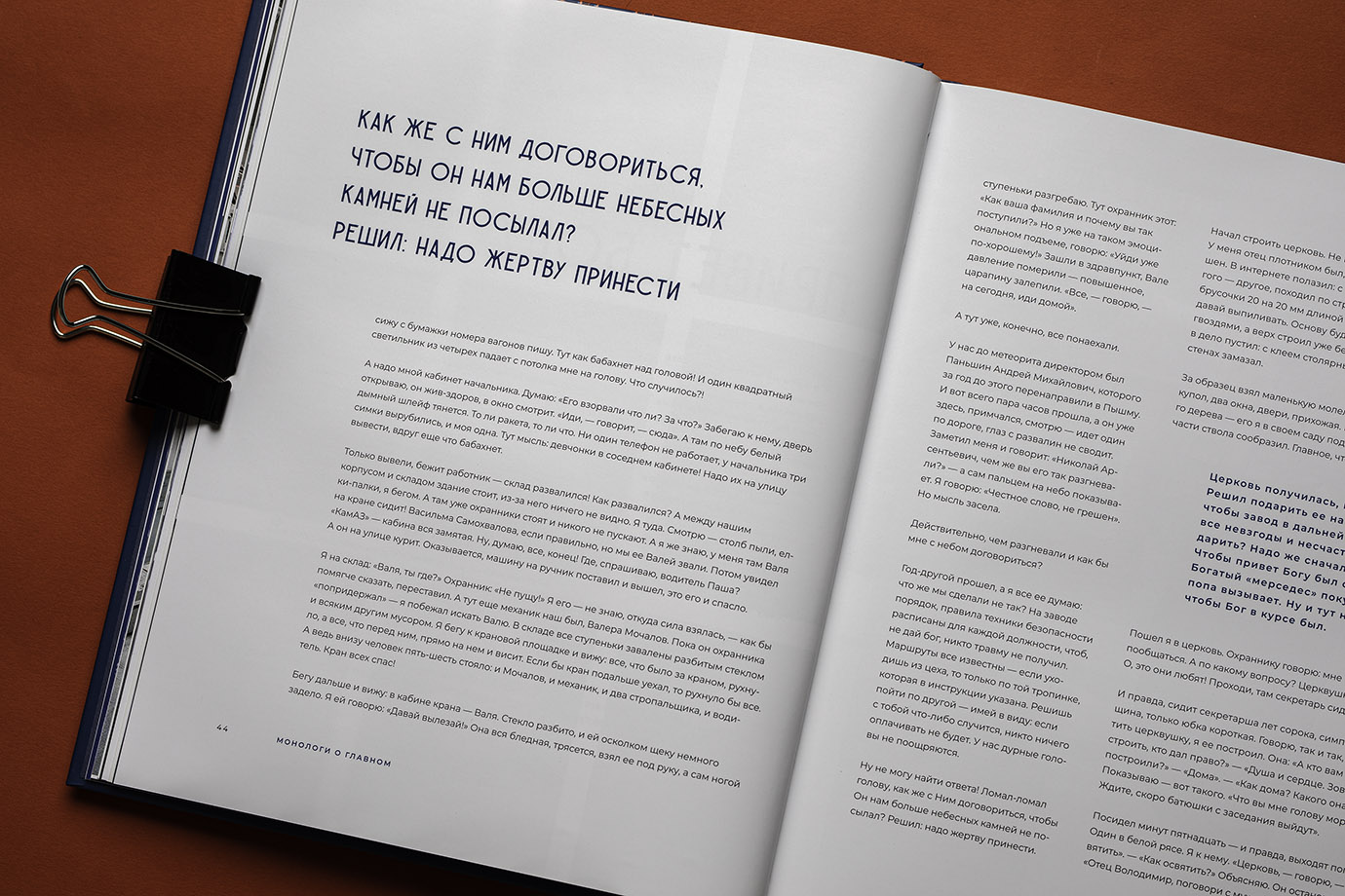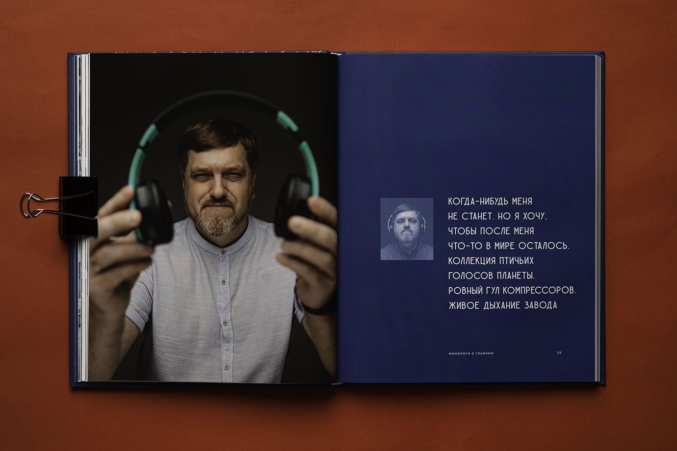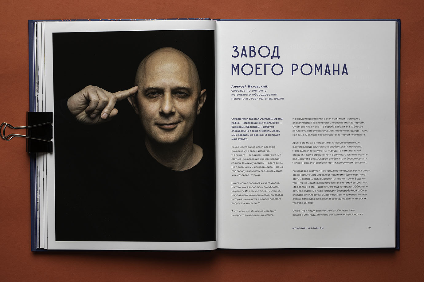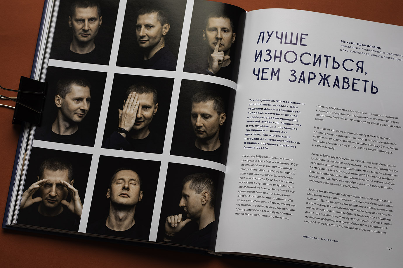 Книга представляет истории людей, а вместе — историю Челябинского цинкового завода, которому исполнилось 85 лет. Каждый монолог и вся книга — страницы большого романа о людях и заводе, с житейскими и профессиональными страстями, проблемами и борьбой. Каждый герой — личность со своими убеждениями и талантом. Реализуясь сами, герои двигали родное предприятие вперед.