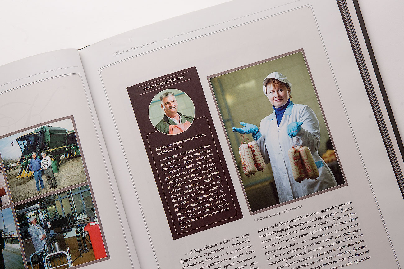 Книги об "Ирмени" и её председателе - итоги многолетнего сотрудничества издательства и коллектива племзавода. Мы - частые гости в Ирмени: следим за успехами предприятия, ведем фото и видеосъемку, накапливаем материалы и реализуем корпоративные и маркетинговые задачи.
