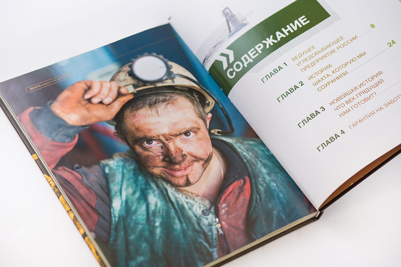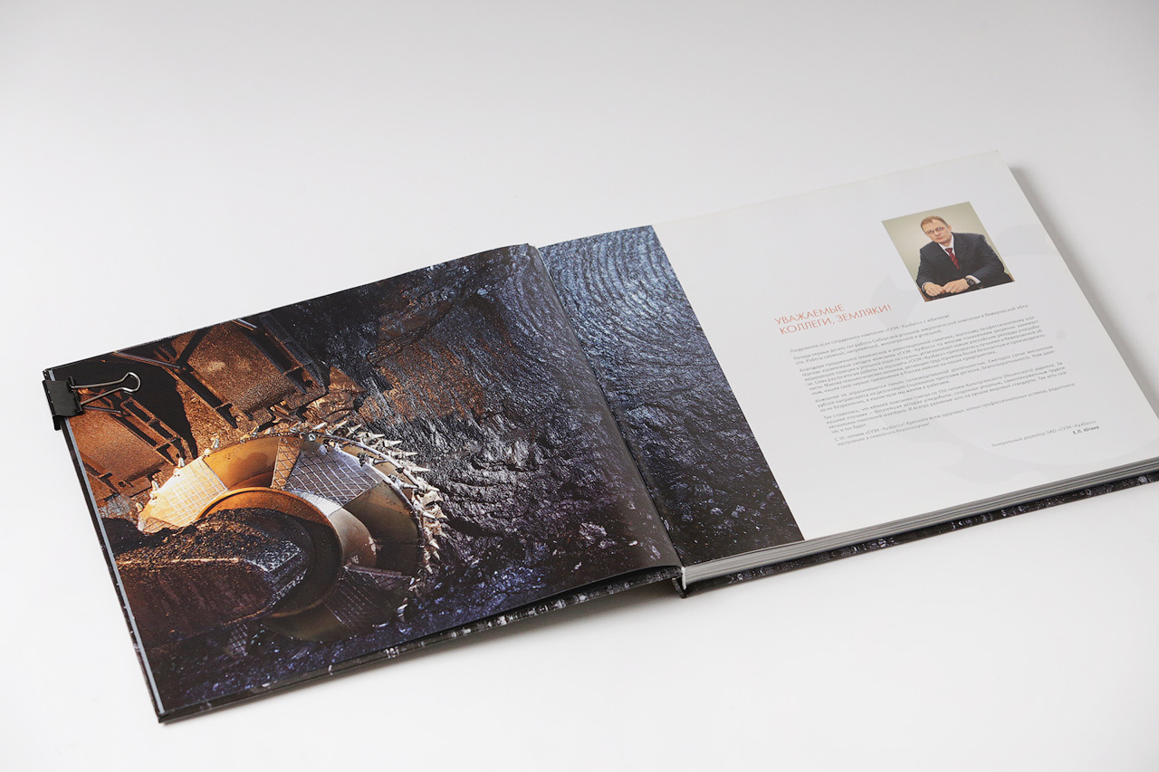 Компания «СУЭК-Кузбасс» по многим показателям уверенно занимает лидирующие позиции в угольной отрасли страны и устанавливает новые российские рекорды угледобычи. Показать главные итоги пройденного пути и главных героев успешной компании — такая задача стояла перед издательством. Жанр фотоальбома предполагает процентное соотношение текста и фото 10 к 90 соответственно. Портреты главных героев — в работе, главные итоги пройденного пути — наглядно!